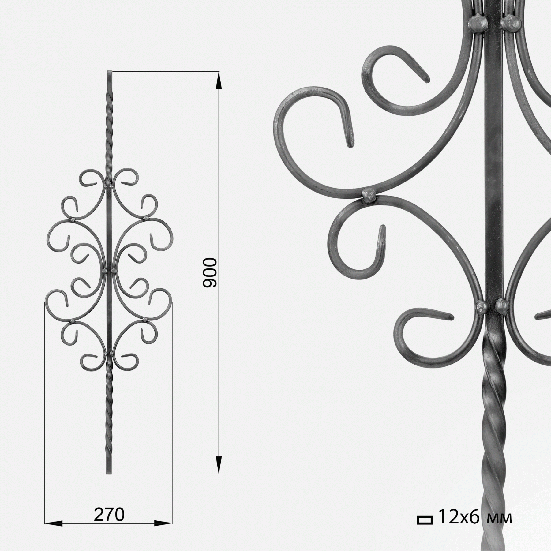 12.S55 Балясина h900х270мм / кв 12х12мм + полоса 12х6мм