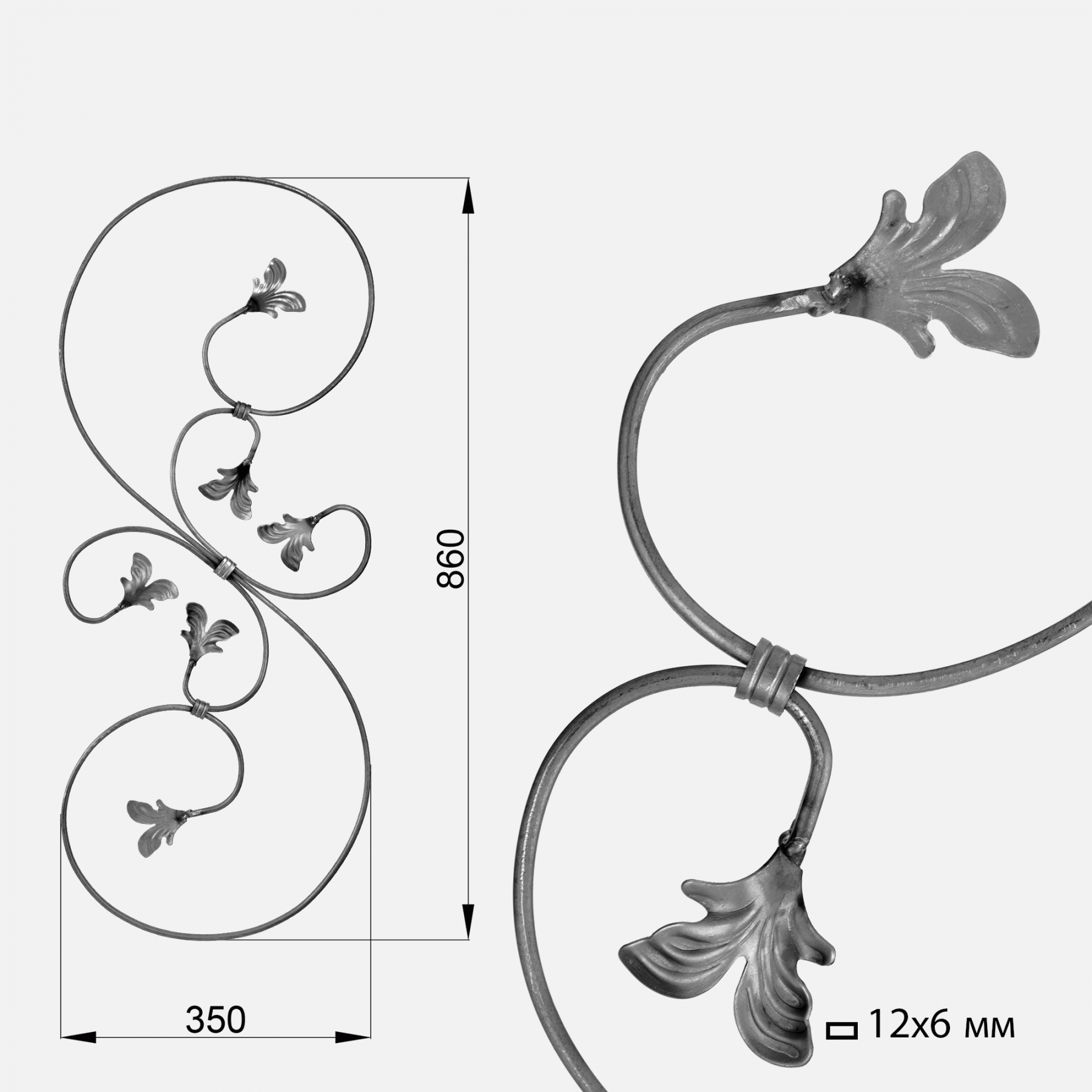 21.116.01 Балясина 860x350мм / полоса 12x6мм Вес 2,07кг