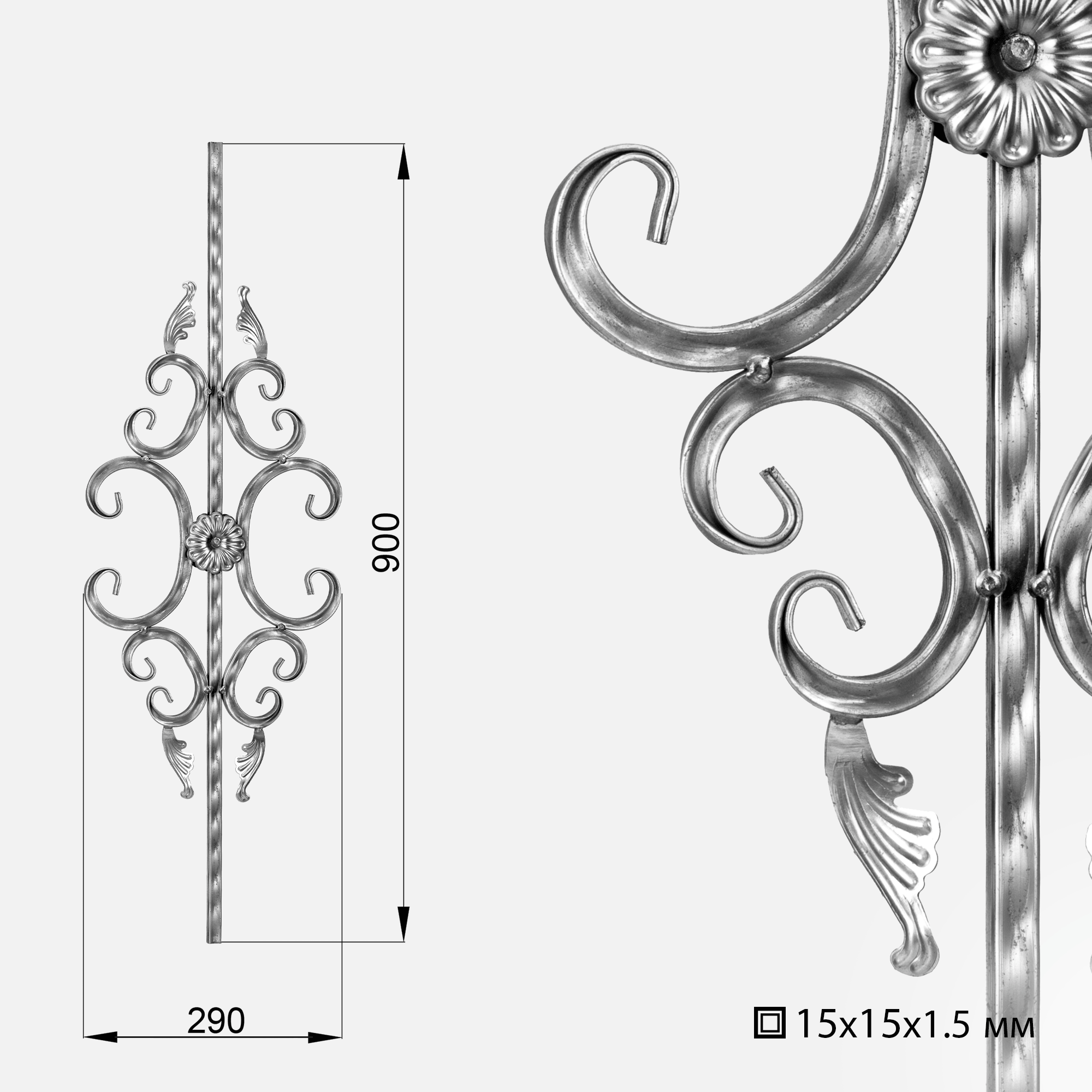 21.870А Балясина h900х290мм / профильная труба 15х15х1,5мм