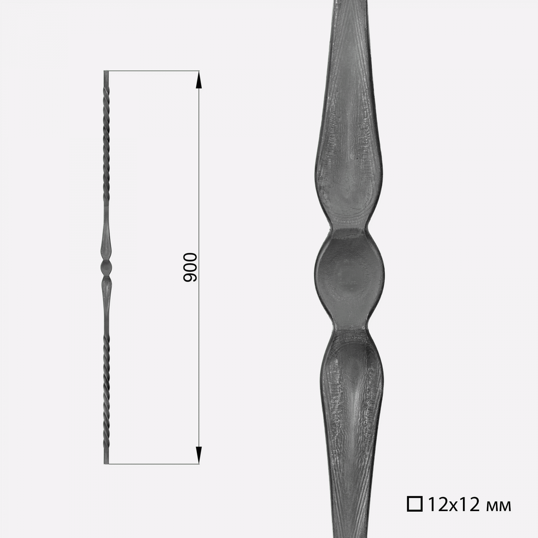 22.229 Балясина с горячим штампом и двумя торсионами L=900мм / квадрат 12х12мм