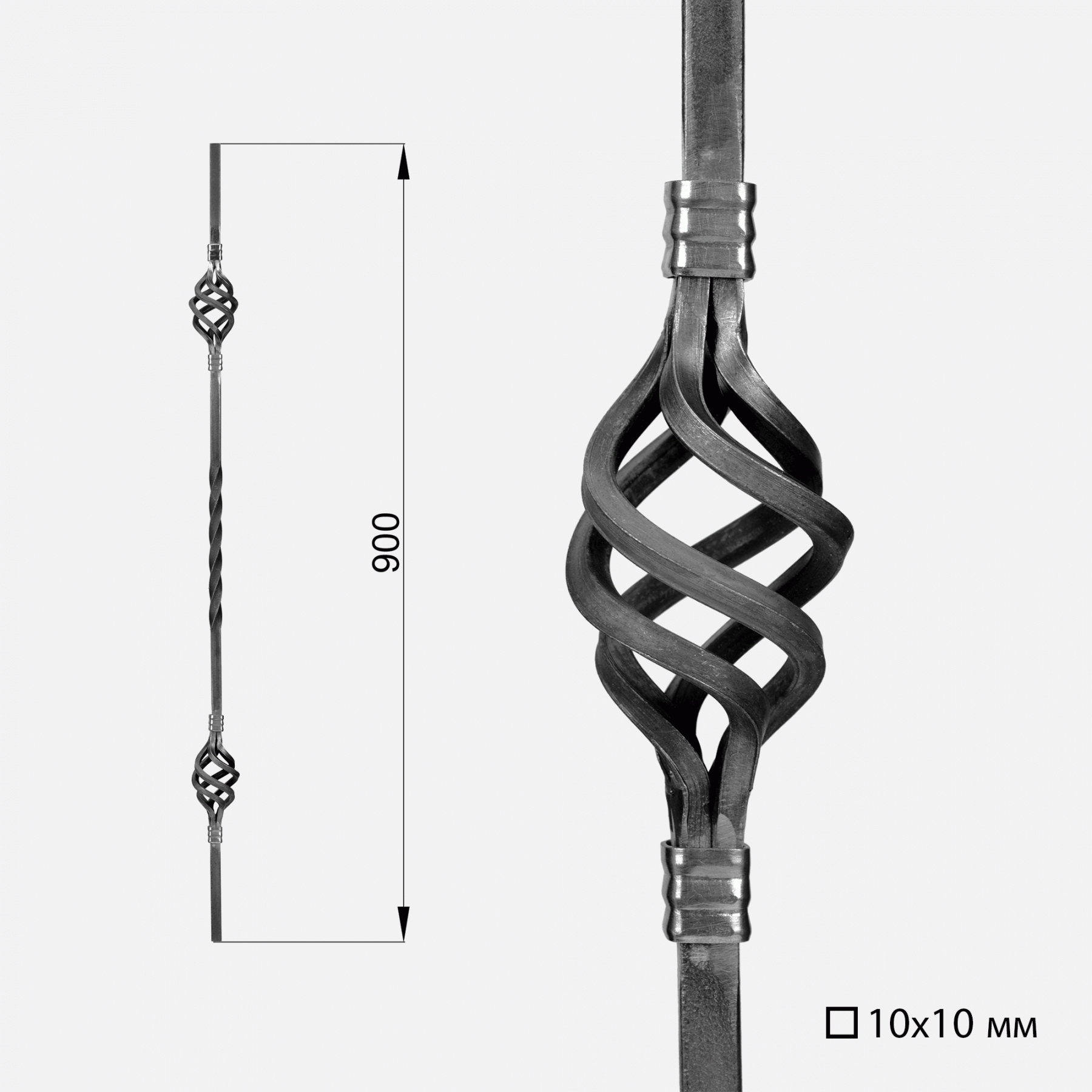 410/10 Балясина с двумя корзинками L=900мм / квадрат 10x10мм с торсионом