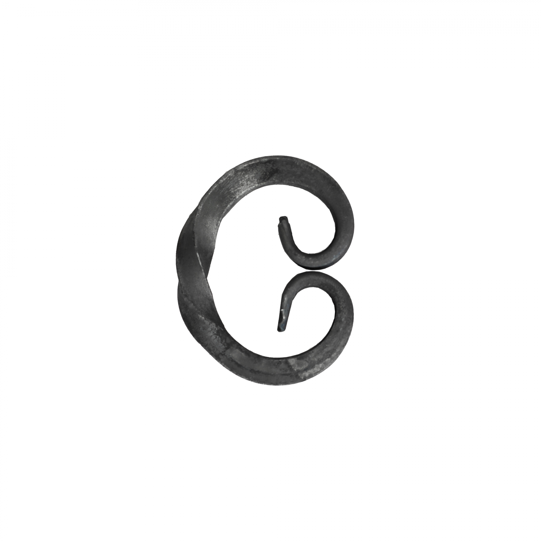 Миниатюрный С-образный завиток с эффектным торсионным скручиванием. Идеальный элемент для создания изысканных декоративных акцентов в компактных кованых изделиях. Сочетает прочность материала с утонченностью форм.