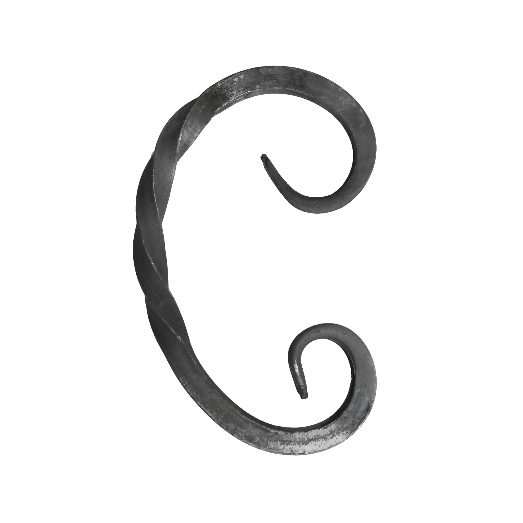 Асимметричный С-образный завиток с эффектным торсионным скручиванием. Динамичная форма элемента создает современный визуальный акцент в кованых конструкциях. Оптимальный размер сочетает декоративность и функциональность.