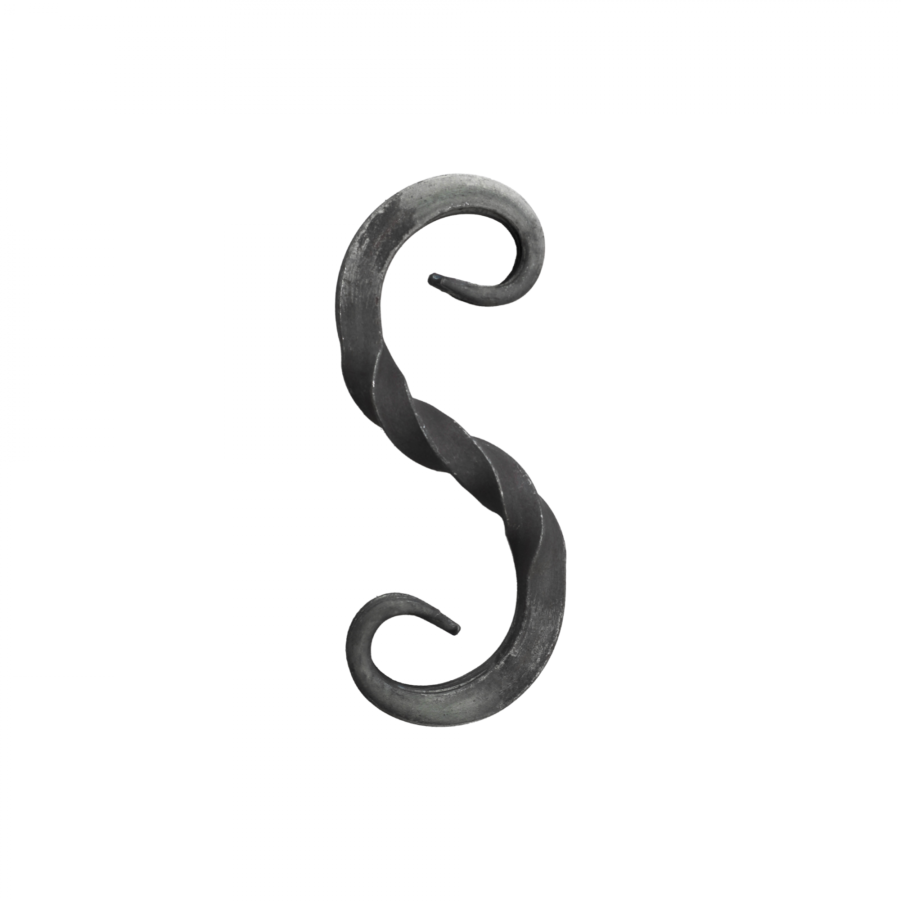 Миниатюрный S-образный завиток с изящным торсионным элементом. Компактный размер и винтовое скручивание создают утонченный декоративный эффект. Идеально подходит для деликатного оформления небольших кованых изделий.