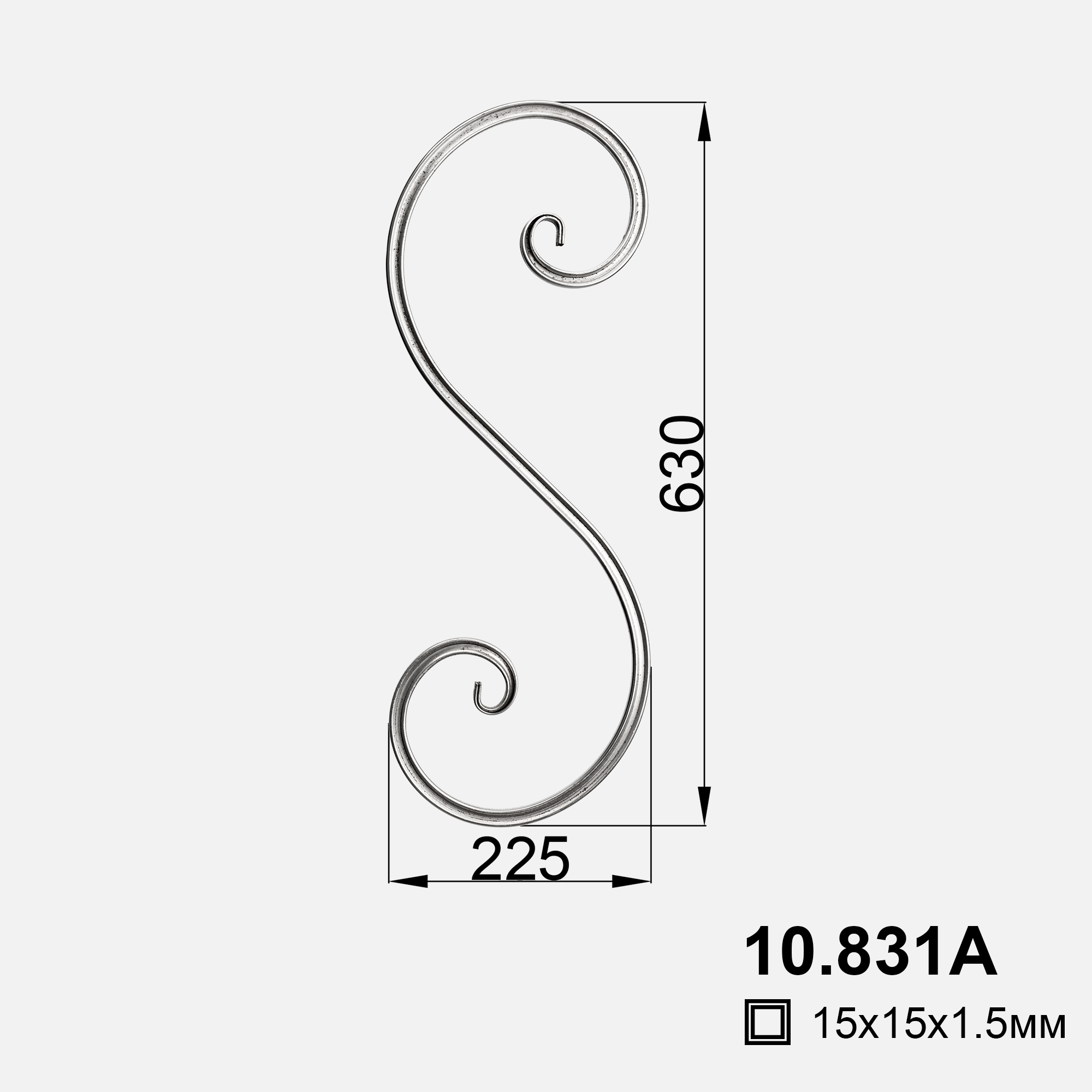 10.831А Элемент S h630x225мм / профильная труба 15x15/1,5мм