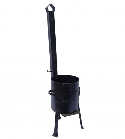 Классическая печь для казана. Установленная труба эффективно отводит дым, что значительно облегчает процесс приготовления. Благодаря небольшому весу и размерам отлично подходит для выездов на природу. Рекомендуем устанавливать казаны объемом 12-16 литров. Также можно использовать вок или садж подходящего размера.
