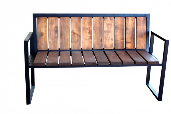 Металлические части окрашены грунт-эмалью "Belakor", и запатинированы. Деревянные элементы изготовлены из массива лиственных пород и защищены декоративным составом "ЛазурьПро VIDARON", цвет – палисандр.
