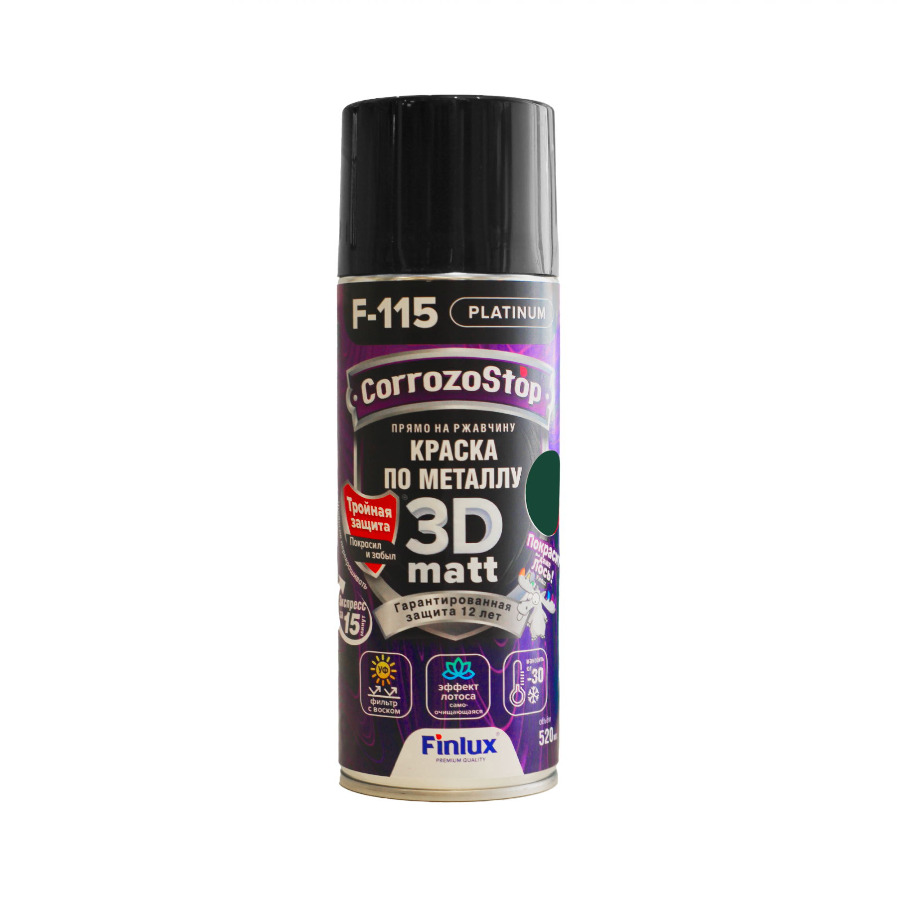 Finlux F-115 3D matt Грунт-эмаль 3в1 антикоррозийная RAL 6005 (зеленый мох, мат) аэрозоль 520мл