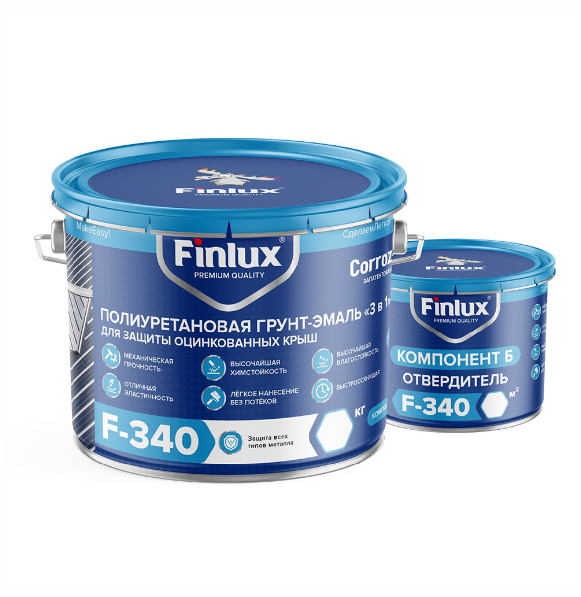 Finlux F-340 (Двухкомпонентная полиуретановая грунт-эмаль для крыш и оцинкованных поверхностей) RAL 7040(Серый)