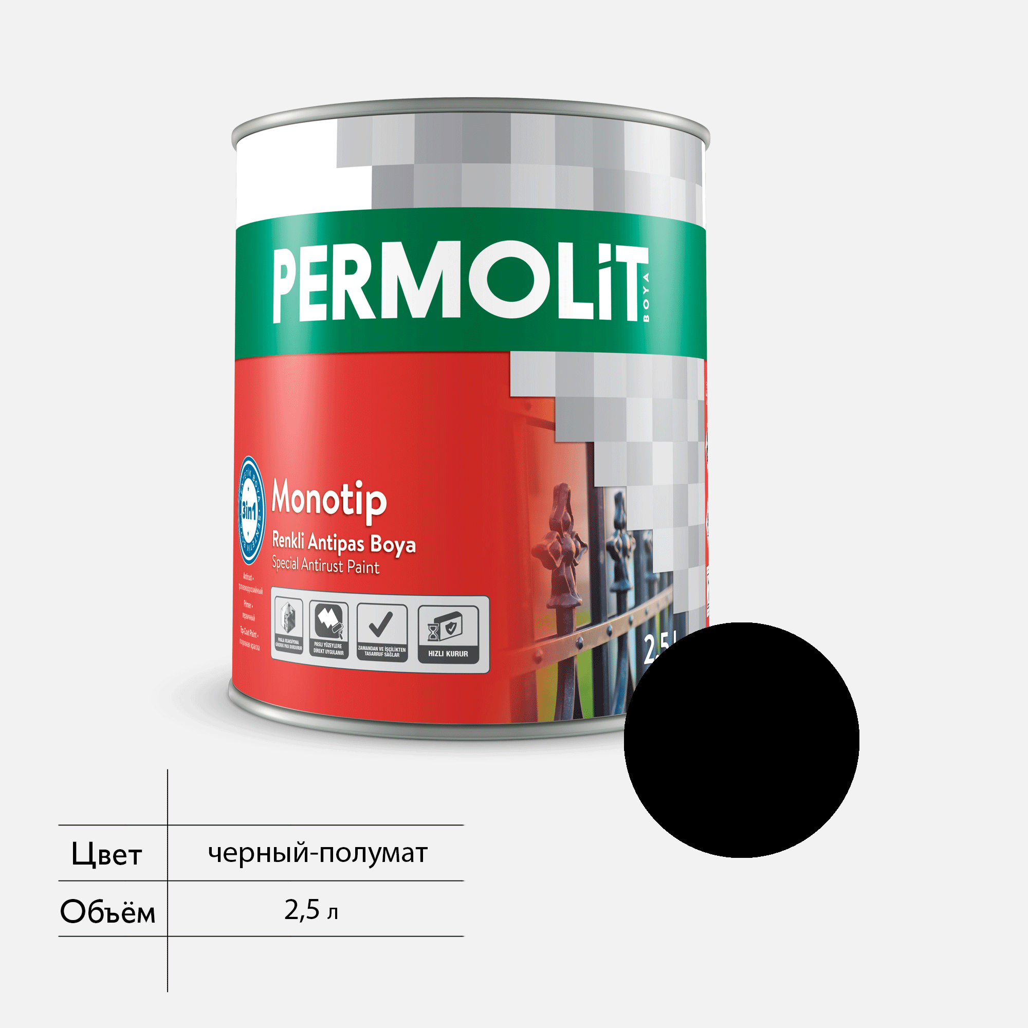 PERMOLIT "Monotip" Краска антикоррозийная 3в1 M3001 (Чёрный полумат) (2,5л)