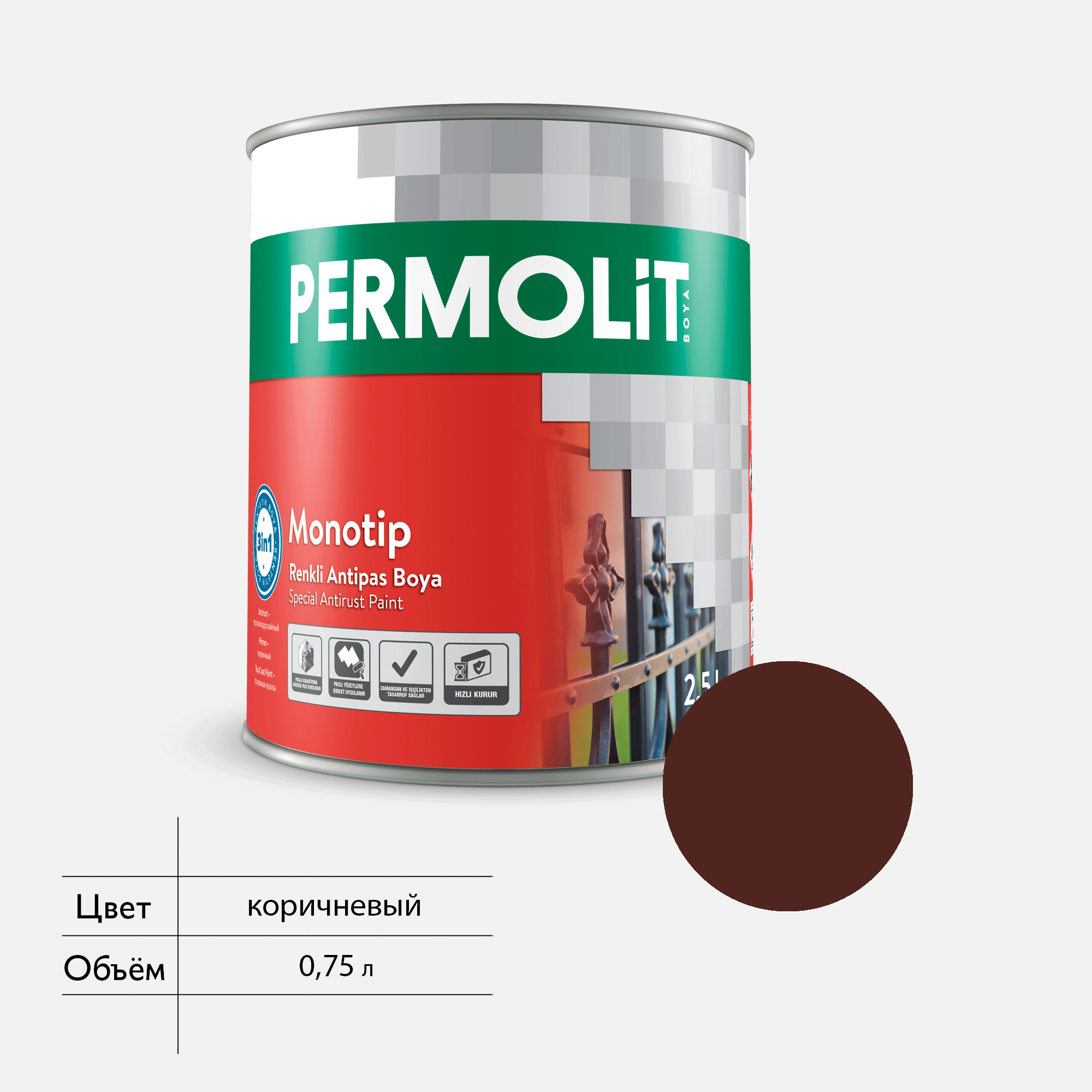 PERMOLIT "Monotip" Краска по металлу антикоррозийная 3в1 RAL8017 (Коричневый полумат) (0.75л)