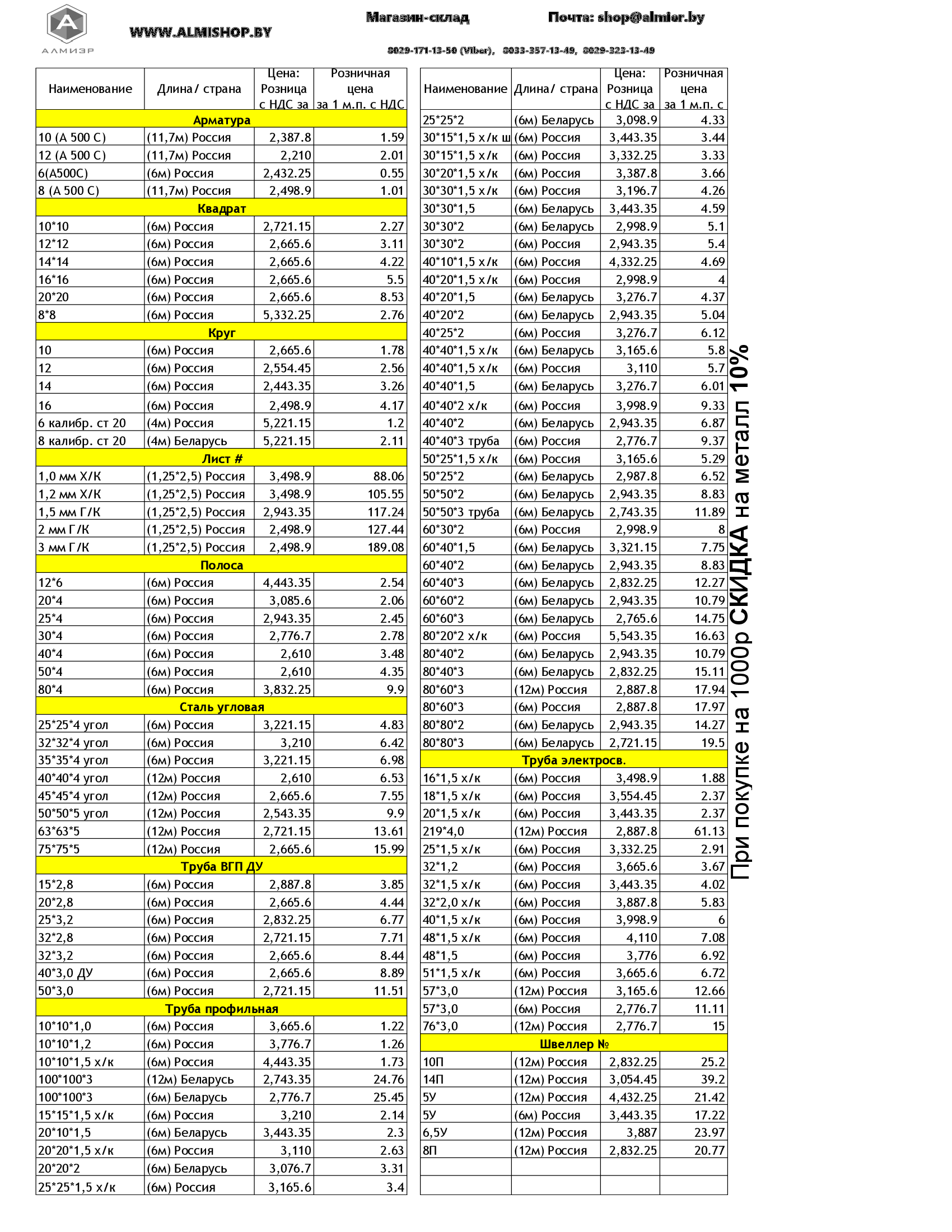 Прайс лист от 19.12.2025 на металлопрокат в магазине Озерцо