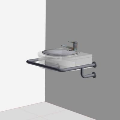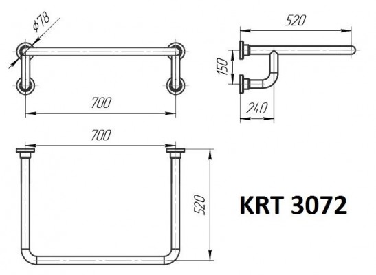 KRT 3072 Поручень настенный для раковины верхнийОпора возле раковины для людей с нарушениями опорно-двигательного аппарата4 фланца 73 мм с 3 отверстиями 6 ммТруба AISI-304 Ø42,4 ммВес 3,7 кг57*78*57см