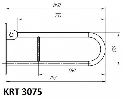KRT 3075 Поручень для инвалидов откиднойПоручень нержавеющий, откидной с креплением в стену и фиксатором в открытом положенииРазмер поручня 750х170х42 ммТруба AISI-304 Ø42,4 мм