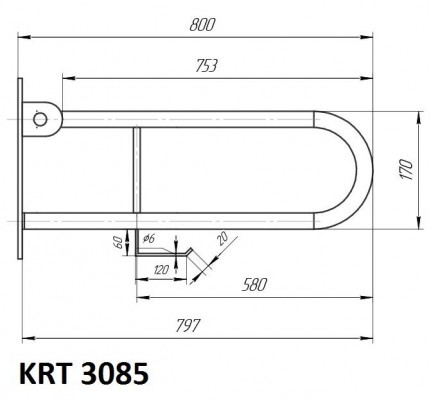 KRT 3085 Поручень настенный для инвалидов откидной с бумагодержателемТруба AISI-304 Ø42,4 мм