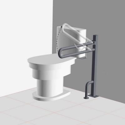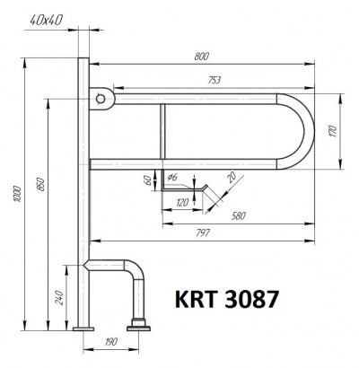 KRT 3087 Поручень напольный усиленный двойной откидной с креплением в пол с бумагодержателемТруба AISI-304 Ø42,4 мм