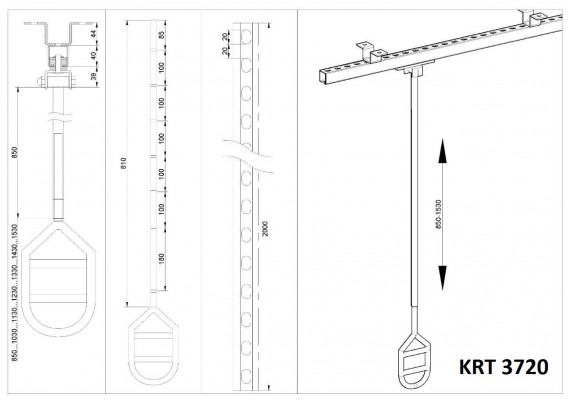 KRT 3720 Штанга подвесная потолочная (белая) 1200-2000ммУсиленная подвесная опорная штанга белая с креплением к потолкуДлина направляющей 2000 ммВысота регулируемой ручки 850-1530 ммИз нержавеющей стали AISI304Белый окрасВнимание! Крепеж к потолку не входит в комплектацию.