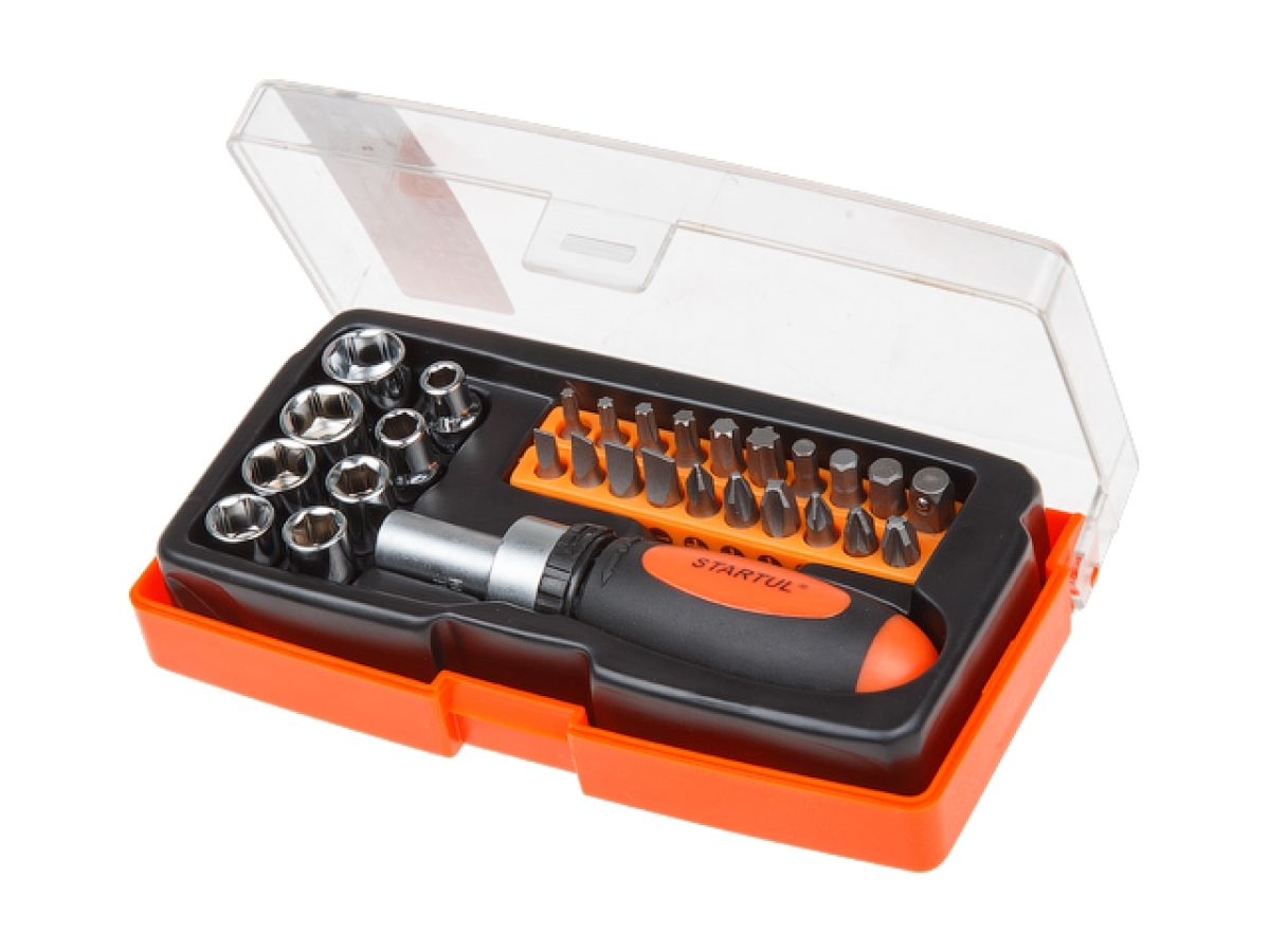 73.753 Отвертка реверс. с набором бит и головок 29пр
