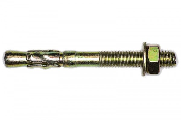 Клиновой анкер - крепёж, необходимый при больших нагрузках. Клиновые анкеры обеспечивают надежную фиксацию. Клиновой анкер представляет собой металлическую шпильку с резьбой на одном конце и распорным механизмом на другом. Клиновой анкер используется при креплении тяжёлых предметов и оборудования к бетону, естественному камню, полнотелому кирпичу. Анкер забивается молотком в предварительно просверленное отверстие и затягивается гайкой.