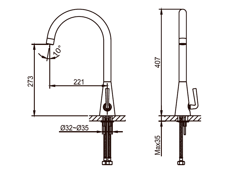 Смеситель оригинальной формы для раковины или мойки с боковой рукояткой