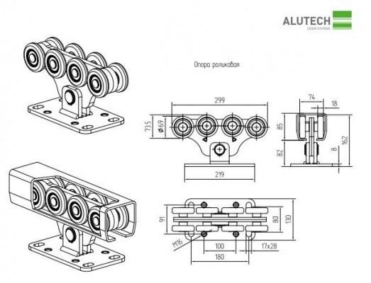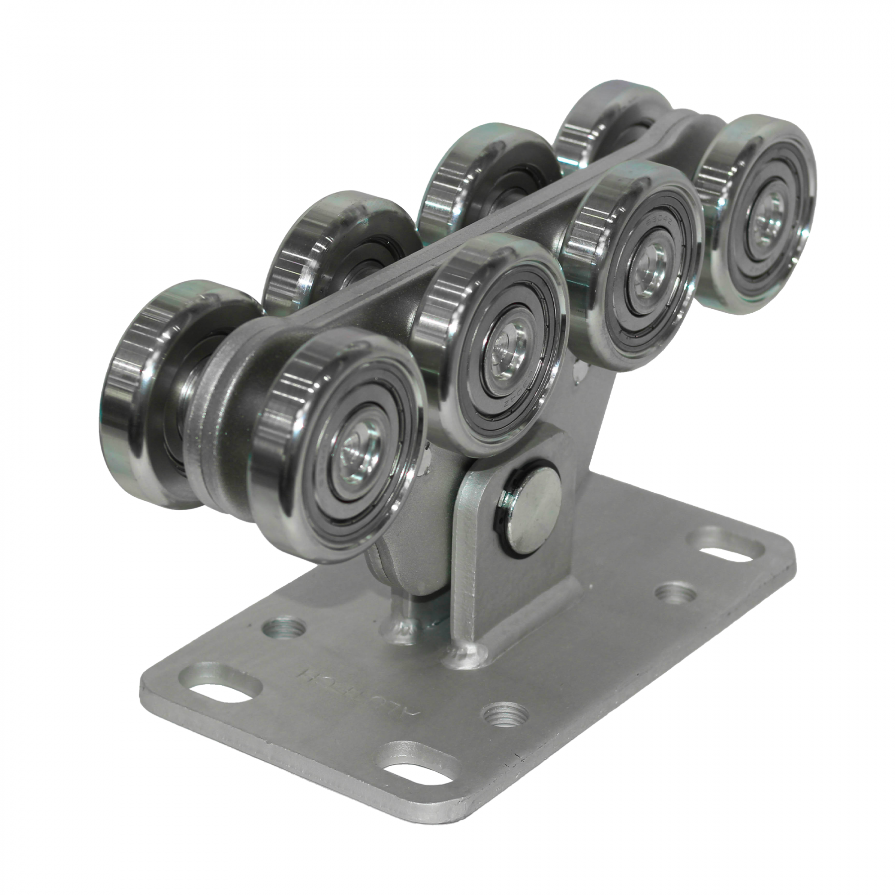 Опора роликовая со стальными роликами является важным элементом откатной системы и предназначена для перемещения створки самонесущих откатных ворот в заданном направлении. Опора SGN.02.150 подходит для створки ворот массой до 700кг.